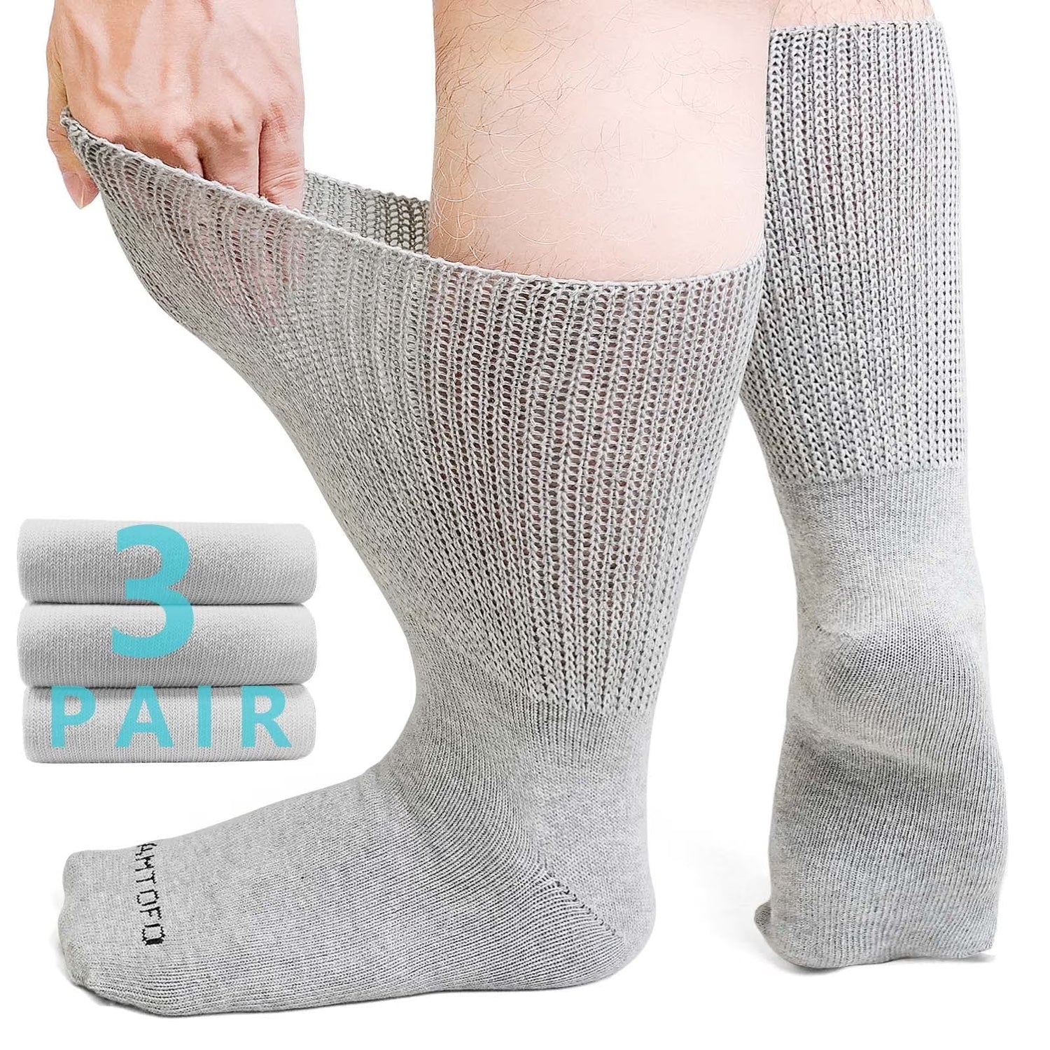 Diabetic Socks, AMITOFO 3 Pairs Diabetic Socks for Men Women Extra Wide Calf Size 10 13 for Swollen Feet, Cotton Edema Bariatric Must Haves Neuropathy Socks