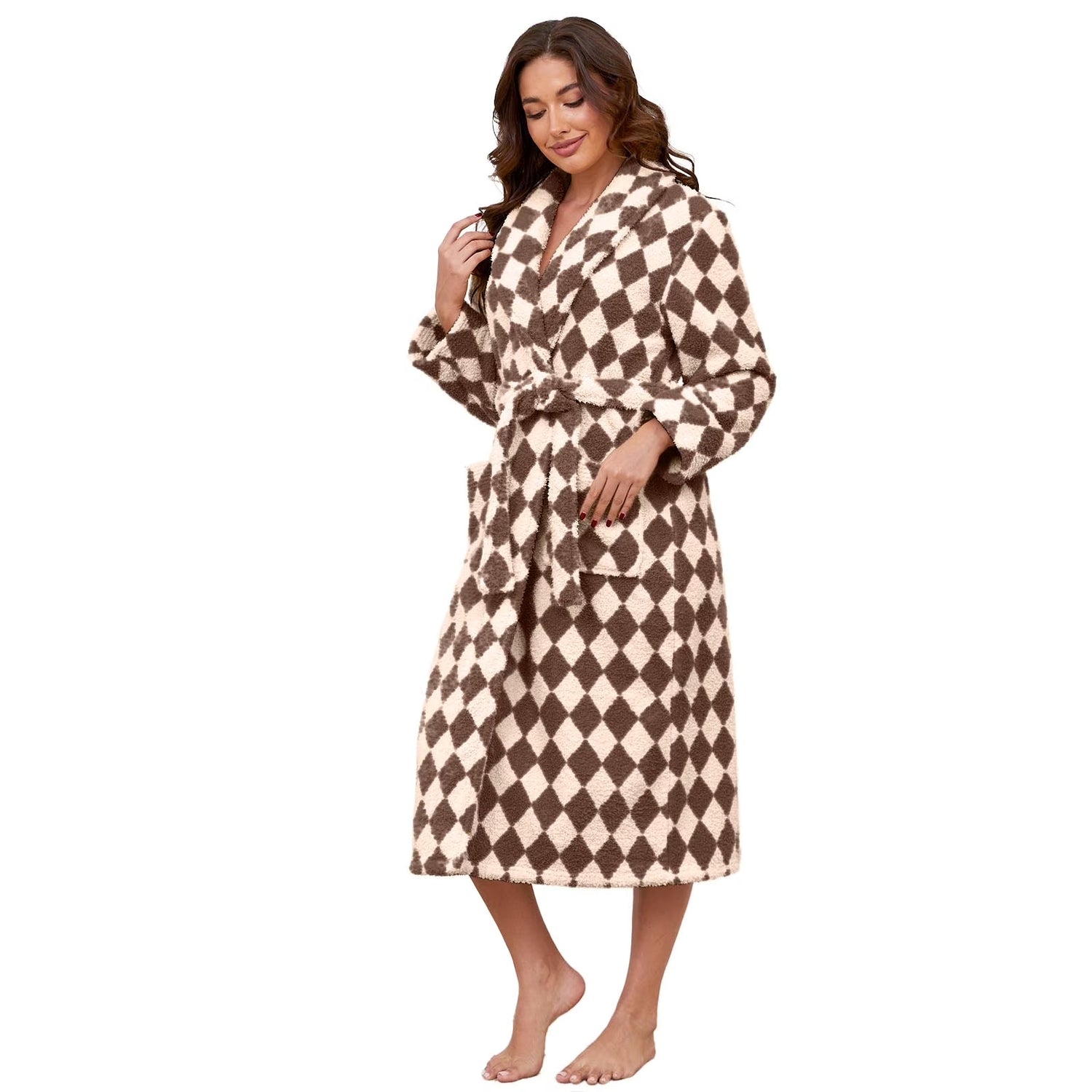 Robes for Women – AMITOFO Thick Fluffy Fleece Womens Robe, Long Plaid Bathrobe with Pockets and Belt, Soft Warm Sleepwear for Spa, Home & Winter